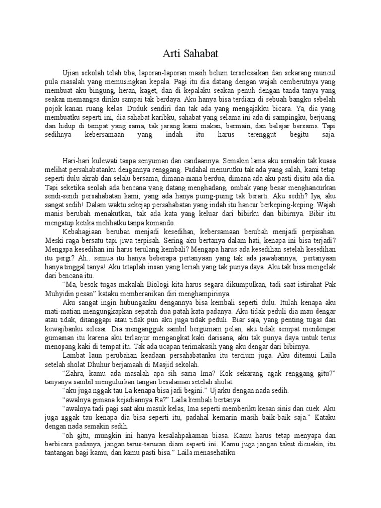 Cerpen Erti Sebuah Persahabatan